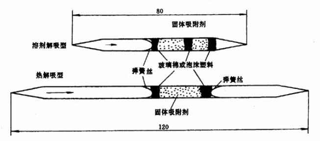 3.7.1.1溶剂解吸型活性炭管:管长80mm,内径3.5~4.0mm,外径5.5~6.0mm;前段装100mg活性炭,后段装50mg活性炭。